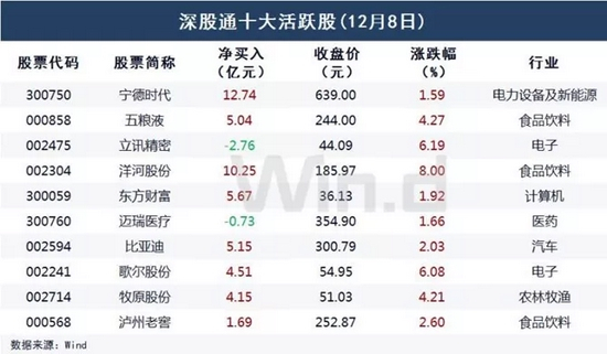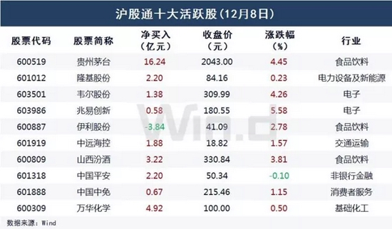 此外,从12月7日沪深股通十大活跃个股来看,白酒股持续获外资抢筹,贵州茅台获大幅净买入16.24亿元,净买入额创逾6个月新高,连续4日净买入,累计净买入25.28亿元,洋河股份净买入10.25亿元,净买入额创历史新高,五粮液、山西汾酒、泸州老窖分别净买入5.04亿元、3.22亿元、1.69亿元。