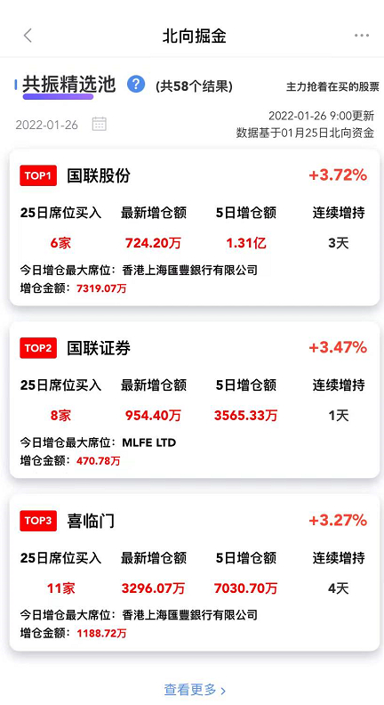 1月26日,截止午盘,北向掘金今日提示的国联股份涨3.72%,国联证券涨3.47%,喜临门涨3.27%。