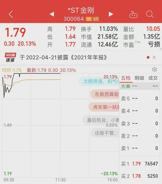 *ST金刚20%涨停