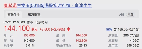 康希诺AH股联袂走强