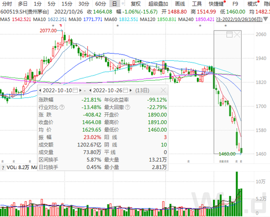 值得注意的是,虽然A股市场整体大幅反弹,但A股市值排名第一的贵州茅台股价却持续走弱,对市场信心产生较大负面影响。10月26日,贵州茅台小幅高开后冲高回落,收跌1.06%,股价再创近期新低,10月份以来,公司股价累计下跌超过20%。