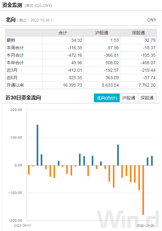 10月26日,北上资金小幅净买入34.32亿元,连续2日净买入,本月净卖出额收窄至472.16亿元。从近期北上资金走势来看,前几日大幅净卖出后,近日部分资金开始小幅回流。
