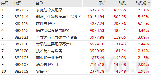 10月26日,A股大幅反弹,板块方面多数收涨,其中,家庭与个人用品板块涨7.11%,位居首位;生物医药、软件与服务、医疗保健设备、半导体等板块亦涨幅居前。