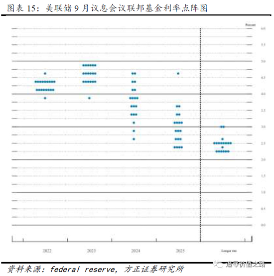若以中位数4.25-4.50%的区间计算,在今年12月议息会议中美联储或将加息50个基点。当前市场主流预期同样是美联储在12月将加息50个基点,也即年底美联储加息力度预计大概率会放缓,货币收紧预期的拐点或许已经出现。
