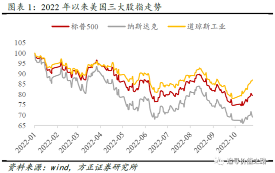 2022年以来,美国股市出现了较大幅度的下跌调整,从年初至今,除3月份、6月份至8月中旬、10月份出现小幅反弹外,基本上是单边下跌走势,特别是4月份以后,更进入了加速下跌阶段。