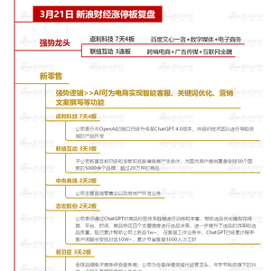 3月21日沪深两市涨停分析:互联网电商概念联络互动收获3连板 市场资讯 2023.03.21 15:24 日k线图 【3月21日沪深两市涨停分析】创业板指涨近2%,新能源板块午后拉升。ChatGPT概念返利科技走出7天4板,互联网电商概念联络互动收获3连板,一图看懂>>