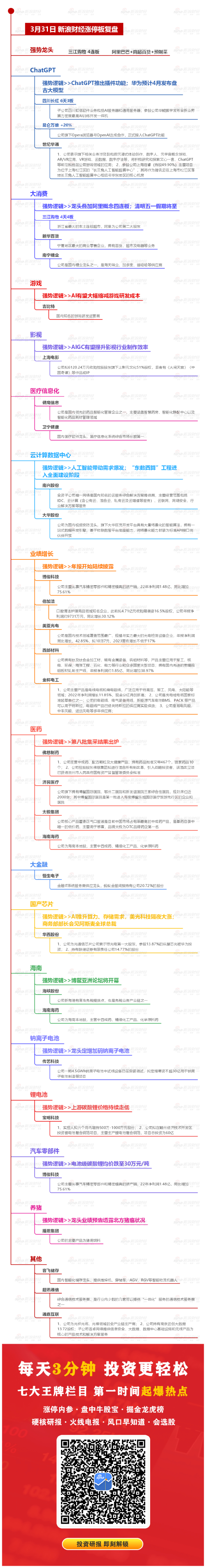 技术上粘合线金叉形成,指数高开高走,走出底部的态势越来越肯定。早盘还是乱七八糟的的边缘板块表现,下午就出现明显的变化,科技股相关的个股出现集体复活迹象,早盘11点后实际上科技股就已经有动作了。最终DRG/DIP,ChatGPT概念,AIGC概念,游戏,人脑工程,云游戏,手游概念,Web3.0等科技股再次成为市场的宠儿;CRO,船舶制造,MLCC,钙钛矿电池,煤炭行业,银行等板块跌幅靠前。总体判断市场走出了短线调整局面,底部逐步显现,为4月份行情奠定了一定基础。