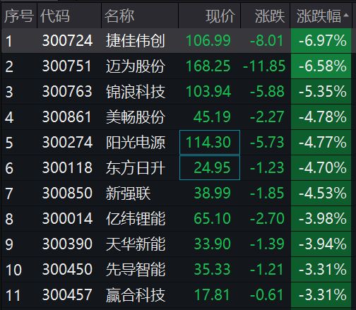 权重股方面,捷佳伟创跌近7%,锦浪科技跌超5%,阳光电源、东方日升跌近5%。