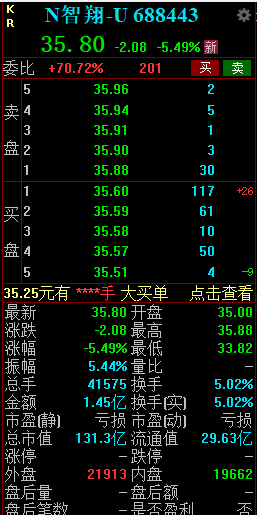 6月20日消息,科创板新股智翔金泰开盘破发,截至发稿,股价报35.8元,最新市值131.3亿元。