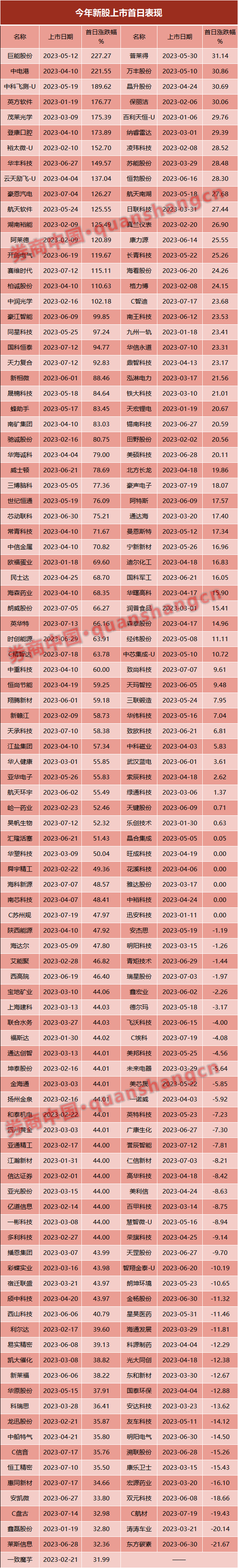 今年上市新股首日表现