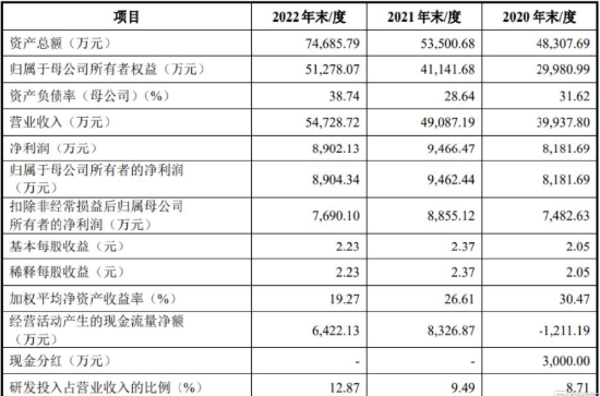 财务数据显示,2020年至2022年,智信精密的营业收入分别为39937.80万元、49087.19万元和54728.72万元,分别同比增长63.50%、22.91%和11.49%。同期,智信精密的研发费用分别为3480.02万元、4658.33万元和7046.06万元,分别占当期营业收入的8.71%、9.49%和12.87%。截至2022年12月末,智信精密拥有研发人员288名,占员工人数的比重为33.92%。