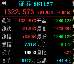 截至发稿,券商板块指数大涨近7%,此外,整个市场的成交额也开始向券商板块有所倾斜,该板块成交额超700亿元。