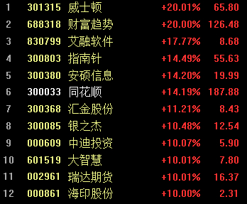 在“牛市旗手”飙涨的同时,互联网金融板块闻风而起,威士顿、财富趋势20CM涨停,指南针、同花顺大涨逾10%。