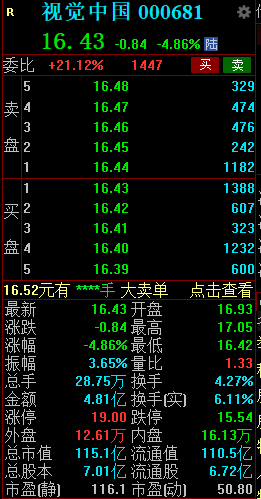 受此消息影响,视觉中国股票单日跌近5%,截至收盘,总市值为115.1亿元,单日总市值减少超5亿元。