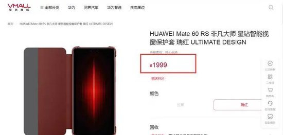 9月27日,据华为商城官网消息,华为Mate 60 RS非凡大师版的手机壳星钻智能视窗保护套在商城上架,提供玄黑和瑞红两种配色,售价1999元。这款Mate 60 RS非凡大师星钻智能视窗保护套将于9月28日10:08开售,与手机开售时间相同。