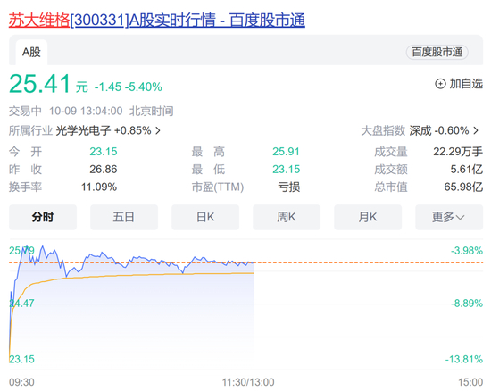 曾经因“光刻机概念股”引发热捧的苏大维格(300331),10月9日开盘后一度大跌超13%。