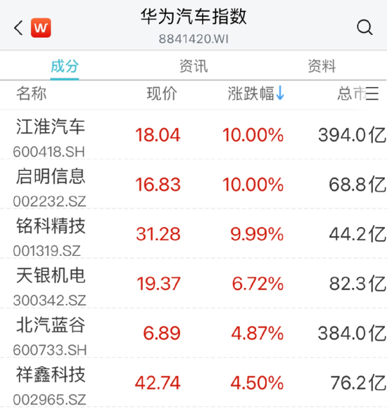 华为汽车概念反复活跃,江淮汽车、铭科精技2连板,启明信息快速拉涨停,天银机电、北汽蓝谷等跟涨。