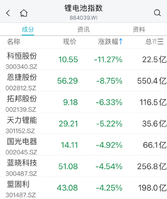 锂电池概念持续走低