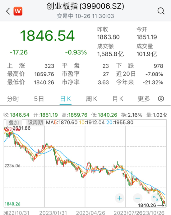 一起来看下今天上午的市场情况。今天A股三大指数集体低开。截至午间收盘,沪指跌0.29%,深成指跌0.8%,创业板指跌0.93%。