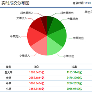 从两市主力资金流向来看,截止收盘,沪深两市主力资金呈现大幅净流出的状态,两市共流出201.4806亿元。其中,超大单净流出77.2741亿元,大单净流出124.2065亿,中单净流入14.6107亿元,小单净流入186.8698亿元。