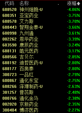 今天上午,医药股回调,医药商业、生物疫苗、创新药等板块跌幅居前。