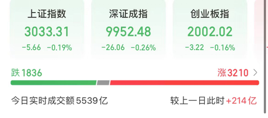 上午收盘,上证指数下跌0.19%,深证成指下跌0.26%,创业板指下跌0.16%。逾3200只个股上涨。工业母机、军工、虚拟电厂等赛道表现也较为活跃,医药股集体回调。