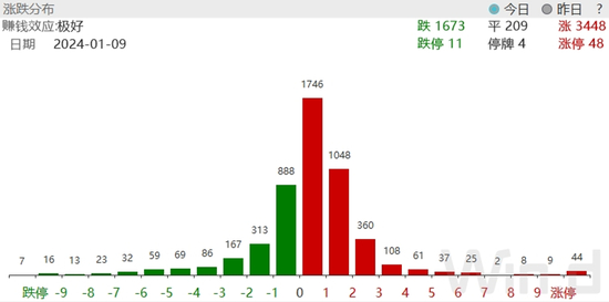 全市场超3400只个股上涨,涨停公司数44家,下跌公司数1600多家,跌停公司数7家,上涨公司家数多于下跌公司家数,人气有所回暖。