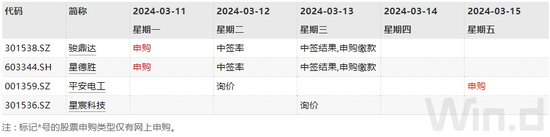 本周(3月11日-3月15日)A股市场将有3只新股发行。分别是3月11日开始申购的骏鼎达和星德胜。3月15日开始申购的平安电工。
