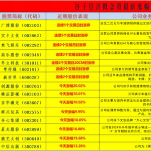 种种迹象充分显示,谷子经济概念股已经脱颖而出,成为目前A股市场最新最火爆的主流热点方向。其中,IP文创开发及衍生品产业链成为谷子经济概念股行情领涨的核心,值得投资者重点关注。