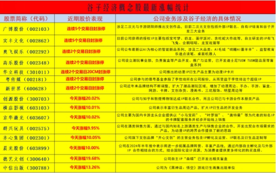 谷子经济概念股或成为A股市场近期主流热点方向,IP文创开发及衍生品产业链成为谷子经济概念股行情领涨的核心。