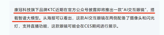 业内人士分析,康冠宣布公司即将推出搭载AI Agent的“AI交互眼镜”,标志着公司在智能眼镜领域的新突破。这款眼镜能直观获取并理解用户感官接收的信息,配备摄像头和闪光灯,与市场上其他AI智能眼镜形成差异化竞争。