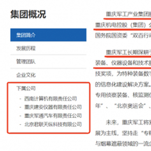 根据重庆军工集团的官网介绍,重庆军工产业集团长期深耕于指挥控制、核生化侦察、核生化洗消及烟幕遮蔽等领域,构建起信息化及特种装备、仪器设备和技术服务三大主营业务,先后承担多项国家重点工程任务,多次获得国家及省部级科技奖项,为特种装备数字化、信息化、智能化转型做出了突出贡献,为政府部门和行业用户提供了众多的信息化建设解决方案。经过多年发展和积累,重庆军工产业集团已成为指挥控制系统科研生产总体单位,以及专用侦察装备、核监测仪器、核生化洗消装备科研生产重点单位,研制的多型装备曾参加“建国60周年”、“北京奥运会”、“上海世博会”等重大活动保障。