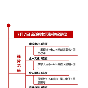 7月7日沪深两市涨停分析:华银电力、金一文化等5股实现3连板 新浪证券 新浪证券官方账号 2025.07.0715:11 关注 日k线图 【7月7日沪深两市涨停分析】创业板指低开低走跌1.21%,两市成交额缩量超2000亿。华银电力、金一文化等5股实现3连板,一图看懂>>