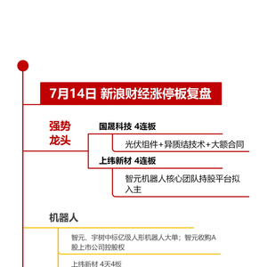 7月14日沪深两市涨停分析:国晟科技、上纬新材双双实现4连板 新浪证券 新浪证券官方账号 2025.07.1415:09 关注 日k线图 【7月14日沪深两市涨停分析】沪指窄幅震荡涨0.27%,两市成交额缩量超2500亿。国晟科技、上纬新材双双实现4连板,一图看懂>>