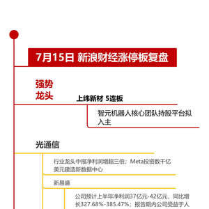7月15日沪深两市涨停分析:智元机器人概念股上纬新材实现5连板 新浪证券 新浪证券官方账号 2025.07.1515:14 关注 日k线图 【7月15日沪深两市涨停分析】创业板指大涨1.73%,AI概念股集体爆发。智元机器人概念股上纬新材实现5连板,一图看懂>>