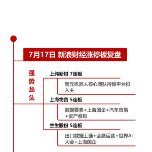 7月17日沪深两市涨停分析:上纬新材7连板 兰生股份、上海物贸5连板