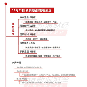 11月21日沪深两市涨停分析:中水渔业6连板,榕基软件5连板 股市直击 2025.11.2115:27 关注 日k线图 创业板指放量大跌4.02%、沪指跌2.45%,全市场近5100股下跌。中水渔业6连板,榕基软件5连板,一图看懂>>
