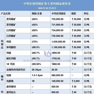 2月25日,中钨在线网站显示钨精矿和主要钨制品的价格依然处于持续暴涨的状态。