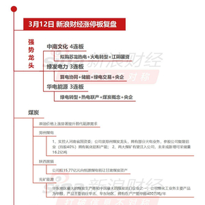 3月12日沪深两市涨停分析:中南文化4连板 ,绿发电力、华电能源3连板 股市直击 03.1215:45 关注 日k线图 沪指缩量微跌0.10%、创指跌近1%,电力、煤炭等能源概念持续爆发。中南文化4连板 ,绿发电力、华电能源3连板,一图看懂>>