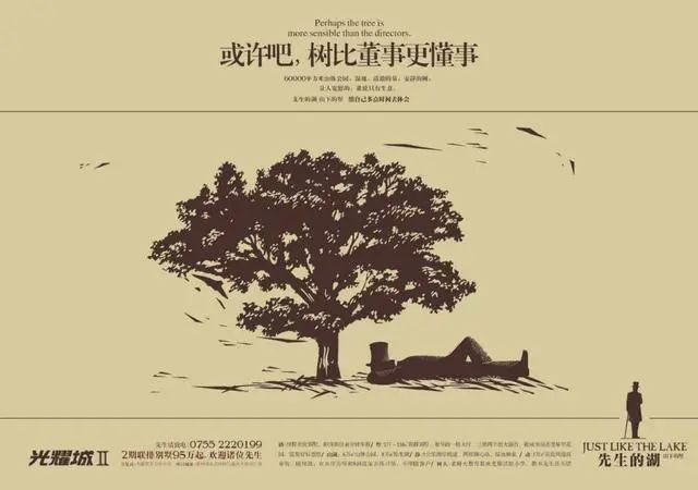 忘了是零几年,那时候还是没上大学的小孩儿,偶然看到某楼盘出街广告的创意画面和一句走心文案,我的心被瞬间击中,才知道地产广告原来可以这样做。