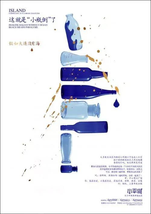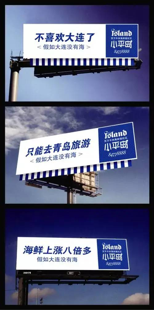 比如,当年揽胜给大连小平岛项目做的广告,每一个画面都简单却有趣又又引人入胜,“假如大连没有海”系列在当年形成了轰动的话题效应,甚至连教育局、当地媒体都以这个话题搞了有奖征文活动。