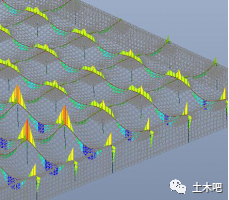 如上图所示,相同荷载、相同跨度的情况下,通过增设柱帽,柱周边柱帽应力相对梁板结构中的梁应力水平小很多。跨中应力水平也较梁板结构小很多。梁板结构柱顶处应力基本是无梁楼盖的2 -3倍的关系。由此推断,在设计合理前提下,无梁楼盖结构的极限承载力应较普通梁板结构更高。