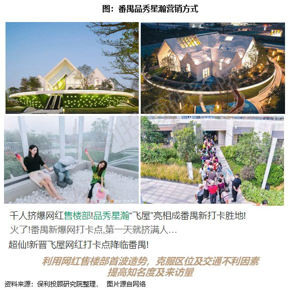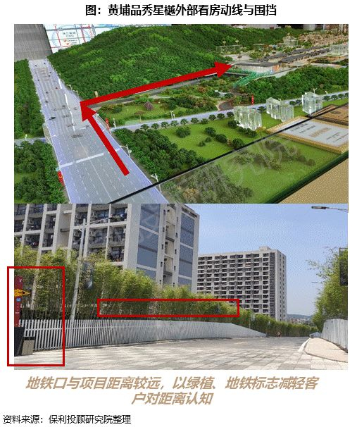 如黄埔品秀星樾为通过利用绿植和地铁标志包装,减少地铁与项目距离感;番禺品秀星图则通过打造异地售楼部和围挡广告克服地铁及南大干线施工对项目销售的影响。