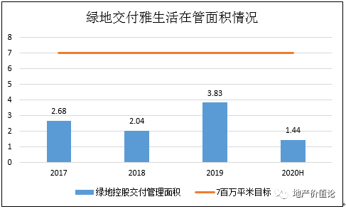 而事实上,2017年以来,绿地控股每年交付给雅生活的管理面积均明显低于7百万平方米的目标,更别说1千万的目标。