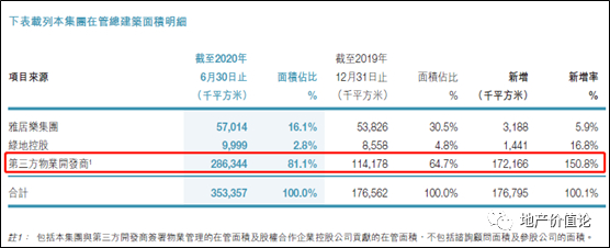 也就是说,随着雅生活在管面积基数的持续膨胀,来自雅居乐集团项目增长快慢对于其业绩的增长拉动也在逐渐减弱,更何况雅居乐集团给予的支持也是一年不如一年。从2017年的7.91百万平米逐步萎缩至2020上半年的3.19百万平米,同比增速有2017年的23.1%下滑至2019年的11.7%。