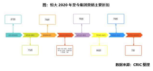 由于上半年受到疫情影响,房地产市场的不确定性增大,另外融资环境再度收紧,以恒大、富力为首的头部房企直接折扣让利促销售抓回款。恒大全年多次举办集团折扣营销,9月重回7字头, 9月7日至10月8日,全国619个楼盘全线7折,恒大总部与地区公司部门负责人以上领导,公开优惠基础上,拥有额外96折的签批权限;并且未来30天,加推至少40个纯新盘入市。“金九银十”两个月,单月销售目标1000亿元。富力则是在8月17日与广汽集团跨界创新营销,打出购房、购车位和购车三重优惠,以8.17折统一折扣提升影响力。