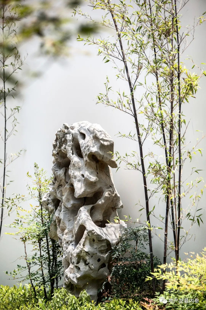 比如园林无山就无脉,自古以来,湖石“采之已久、今尚鲜矣。”,在传统湖石日渐稀少的情况下,融创西江桃源团队不远千里考察多个石材产地,经过多轮对比、不惜成本从江苏跨省搬运石材、作为假山的原材料,据说远道而来的湖石就高达2000元\吨。