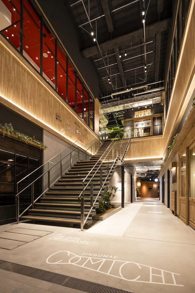 空间引入“阶梯”概念,通过阶梯、小路的设计形式创造在“城镇”中游走的感受,同时每家餐厅都设有露台,创造更具自然感的放松体验。
