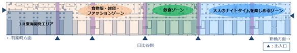 包括东京车站八重洲侧和丸之内侧相连检票口内的购物饮食复合式空间「GRANSTA」,以及在丸之内地下1层检票口外的购物中心「GRANSTA 丸之内」两部分,共约1.13万平方米,形成JR东日本目前在日本最大规模的站内商业设施。