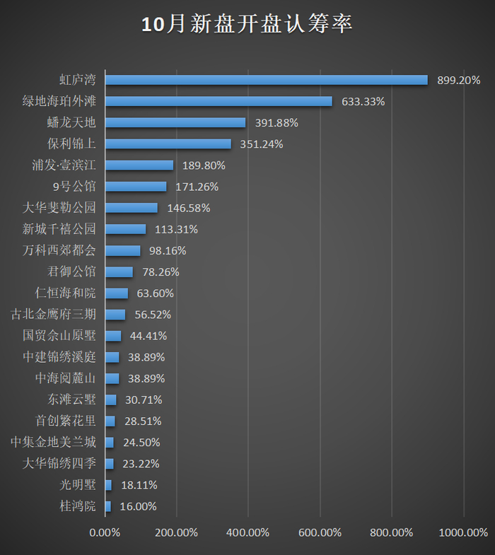 以大华锦绣四季和中集金地美兰城为例,前者曾在今年9月成为宝山区销售金额与销售面积双榜首;后者曾在今年前9月成交套数达698套,位居上海楼盘销售套数排行榜第3位。但两者在10月认筹率均未达到3成。